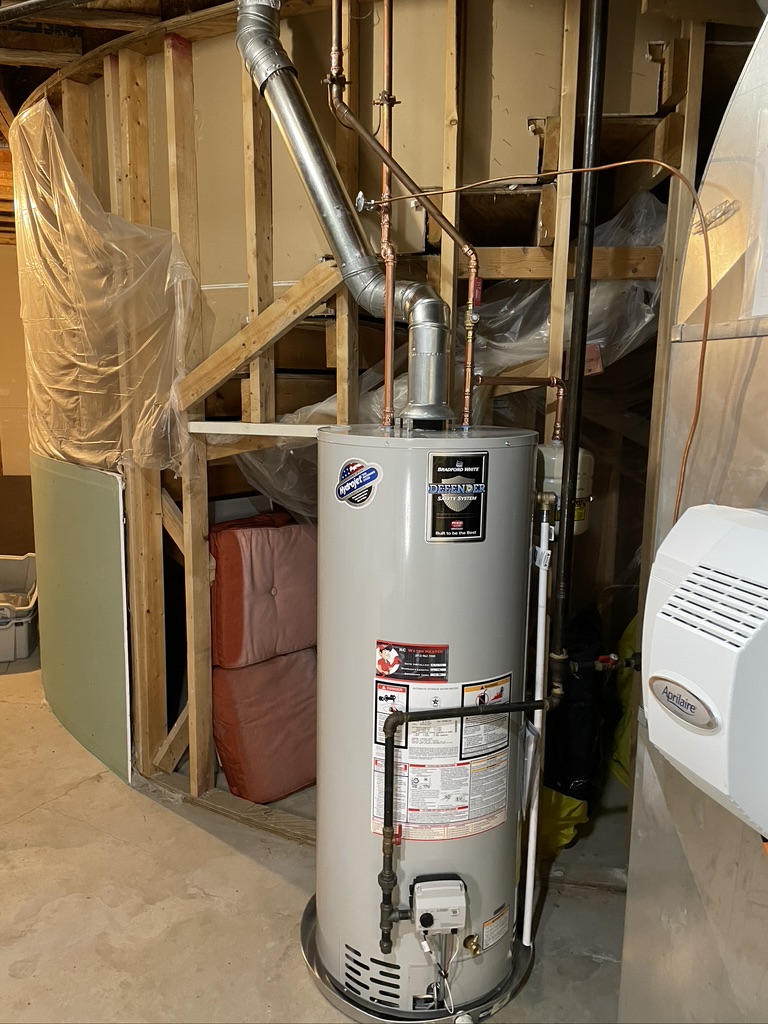 Bradford White water heater with new venting May 26, 2023 768 × 1024 Bradford White water heater with new venting Bradford White RG250T6N with thermal expansion tank made by backstop. We added a water heater pan to this installation.
