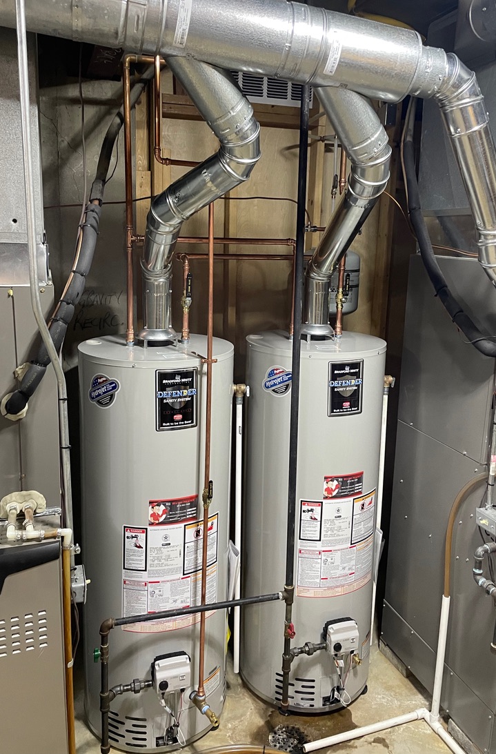 Two water heaters common vented May 26, 2023 719 × 1093 Two water heaters common vented Multiple gas water heaters venting into common vent. Bradford White 50 gallon water heaters.